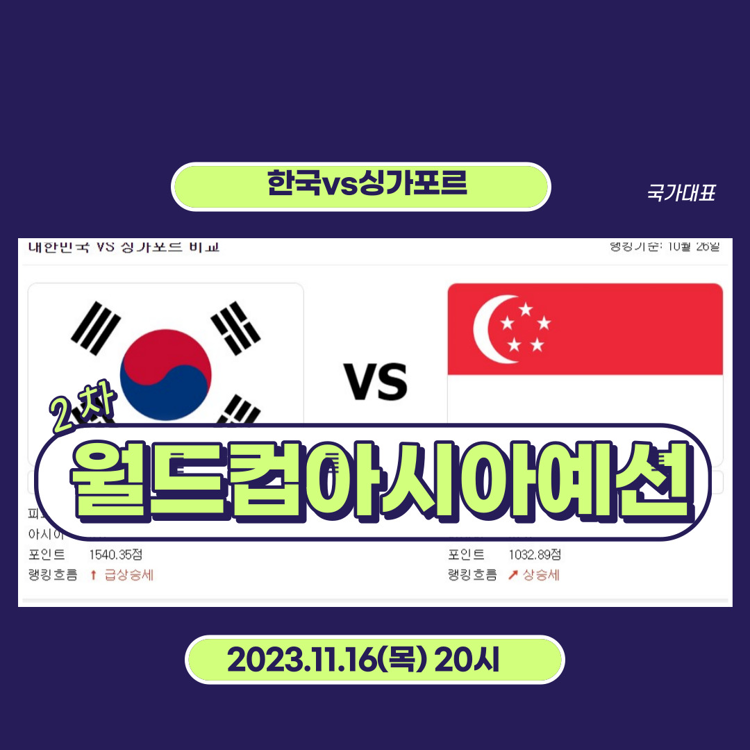 카테고리 없음 대한민국vs싱가포르 2026 아시아 2차예선 실시간으로 보기 by 올띵굿 2023. 11. 15. 출처 -양영주 ⚽실시간 무료 중계 바로보기 ⚽모바일 중계 바로보기 2026년 월드컵 아시아2차예선 [대한민국 vs 싱가포르] 일시 : 2023.11.16(목) 20시 장소 : 상암월드컵 경기장 한국과 싱가포르의 북중미 월드컵 아시아 2차예선이 11월16일 20시에 펼쳐집니다. TV와 모바일에서도 실시간으로 볼수있으니 대한민국과 싱가포르의 경기를 고화질로 보고 싶으신분들은 참고하시길 바랍니다. 반응형 공유하기 게시글 관리 세상만사