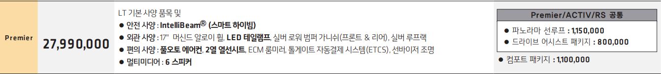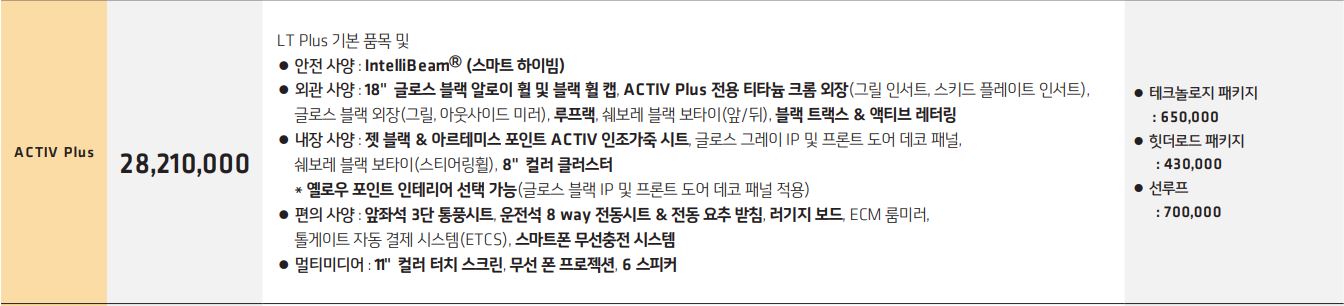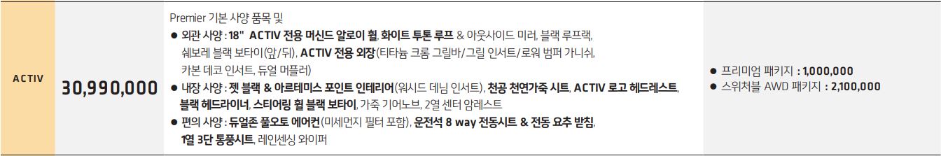 액티브 플러스 트림 가격은 28,210,000입니다.