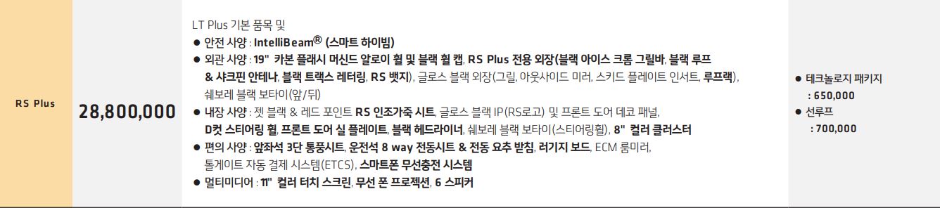 가장 상위 트림인 RS Plus 트림 가격은 28,800,000입니다.