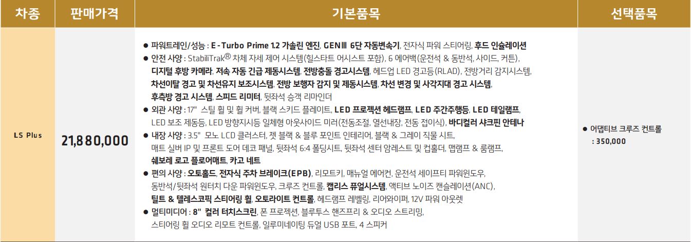 가장 하위 트림인 LS Plus 트림 가격은 21,880,00입니다.