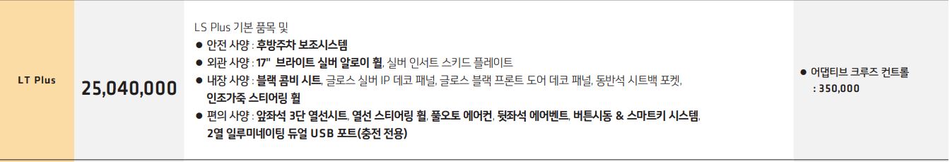 두 번째 트림인 LT Plus 가격은 25,040,000입니다.