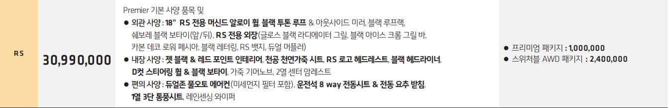 RS 트림 가격은 30,990,000입니다.