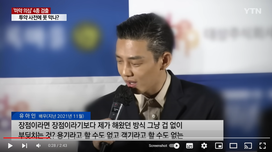 유아인은 서울 병원을 돌며 프로포폴을 상습 투약한 혐의를 받고 있는데요. 용량도 엄청나다고 알려져 있죠. 거기에다가 모발, 소변검사 과정에서 프로포폴 외에도 대마류, 케타민(전신 마취에 쓰는 약물), 코카인까지 4종류의 약물 성분이 검출된 것으로 전해졌습니다.