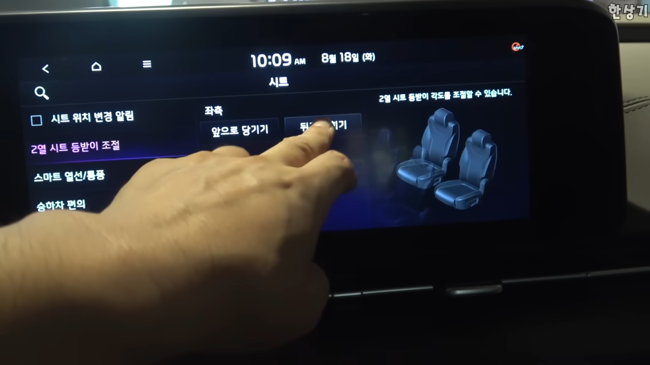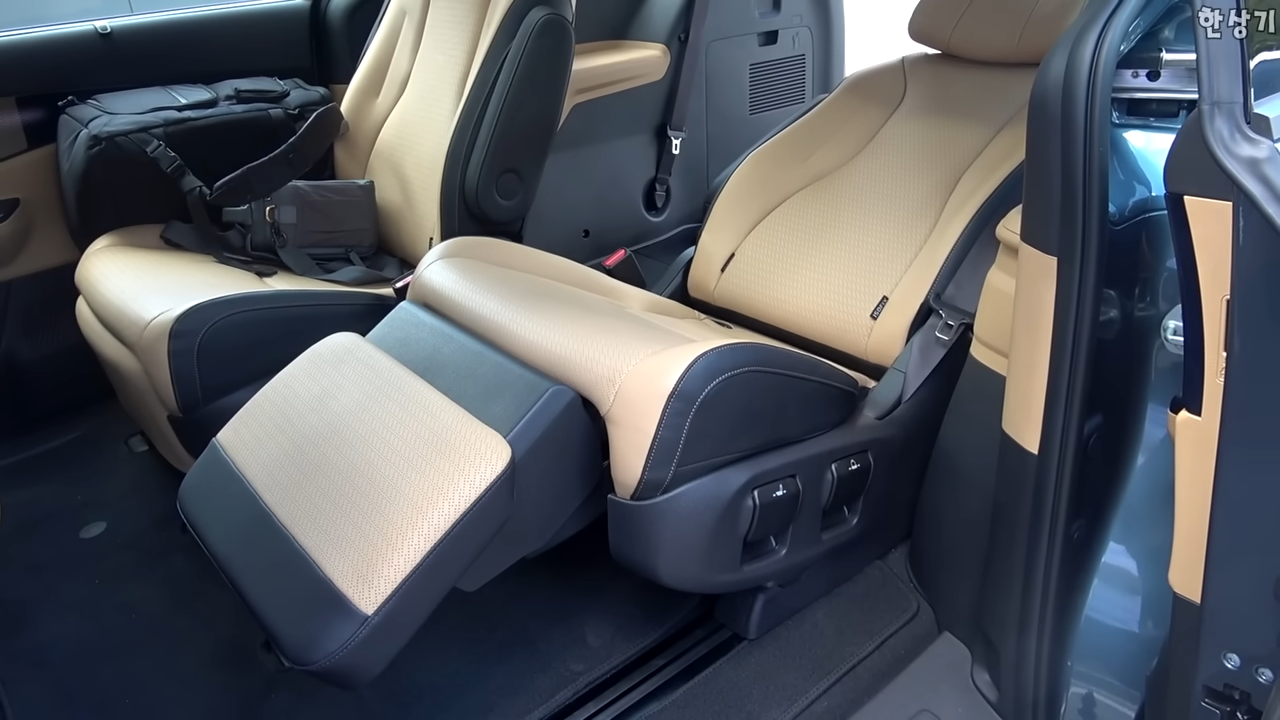 2열이 리클라이닝이 된다는 장점 또한 다른 차에서는 찾아볼 수 없는 메리트입니다. 뒷좌석에 탄 사람은 누워서 편하게 이동이 가능합니다. 연예인들이 카니발을 많이 타고 다니는 데에는 다 이유가 있죠. 뒷좌석 리클라이닝 각도도 운전석에서 조절이 가능합니다.
