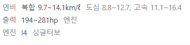 차량크기 4.8m에 달하고 연비는 도심 9km 대 고속은 최대 16km가 나옵니다.
