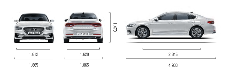 준대형 세단 답게 덩치는 큰 편입니다. 5m에 달하는 크기인데 그만큼 뒷좌석이 편하다는 장점이 있습니다.