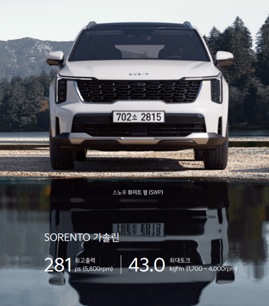 연비는 기존 세대 모델과 큰 차이가 없어 보입니다. 가솔린 터보 엔진이라서 치고 나가는 힘이 좋은 차량이기에 연비가 혹 부담되시는 분들은 쏘렌토 하이브리드로 가시면 딱 니즈에 맞는 차량이실 겁니다.