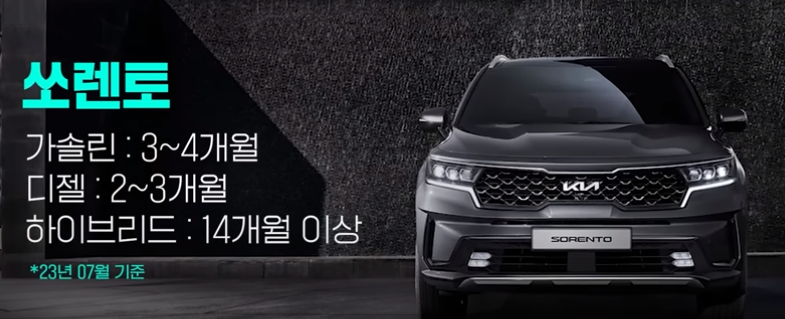 대략적인 출고기간은 가솔린 3~4개월 디젤 2~3개월 하이브리드는 14개월 이상입니다. 정확한 출고일정은 밑에서 확인해 보시길 바랍니다.