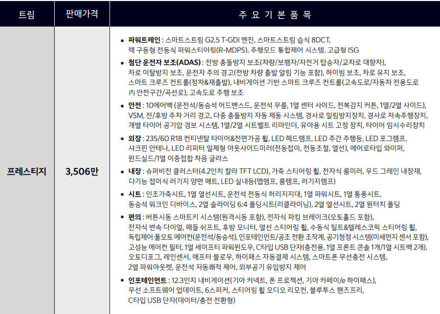 사실 저는 프레스티지 옵션으로만 충분하다고 생각하지만 스마트 테일게이트 라든가 어라운드뷰 HUD 옵션을 추가하고 싶으신 분은 참고하셔서 추가하시면 되겠습니다.