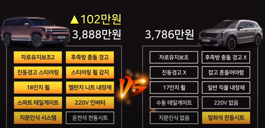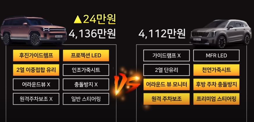 쏘렌토 vs싼타페 가격비교 3 최상위트림(시그니처 vs캘리그래피)