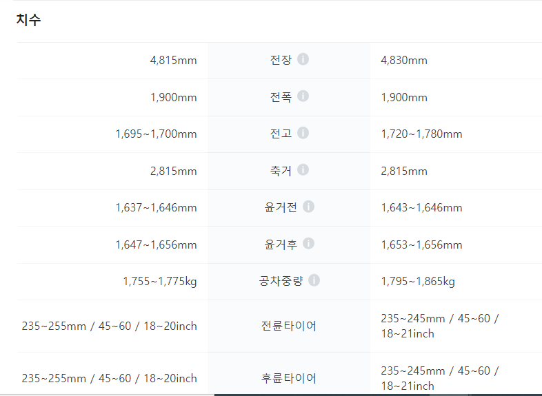 가격차이는 24만 원 밖에 안 나는데 기본적인 옵션이 싼타페가 훨씬 앞서는 모습을 보여줍니다. 역시나 풀체인지여서 훨씬 가성비 있게 나온 거 같네요.